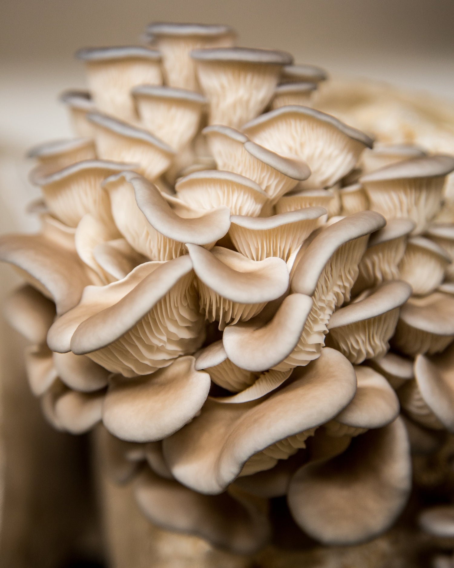 Four years ago we were located in Nordvest, Copenhagen. In the basement below our nano brewery, Kyle has started Funga Farm with passion to introduce more plant based ingredients and grow gourmet mushrooms for Copenhagen restaurant and foodie scene. Very early we realized that mushroom substrate is similar to spent grain from the beer brewing and started experimenting with potential use for mushroom growing. Since then both food startups scaled and moved into a larger production space in Brøndby. Currently we have an ongoing R&D project funded by Food & Bio Cluster, to investigate commercial potential of using large portions of spent grain to produce mushrooms.